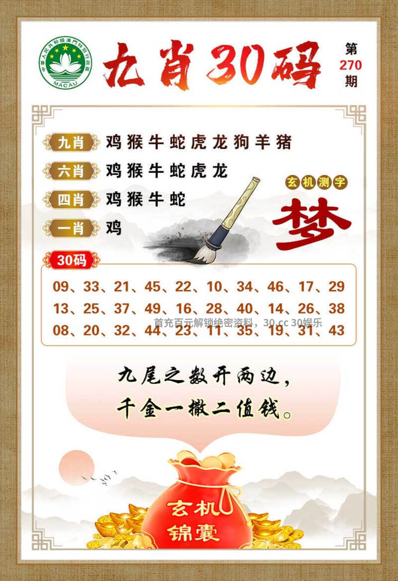 270期:【绝杀二肖】〖牛猴〗开:羊35准